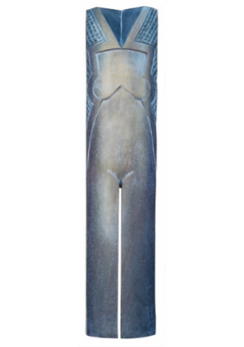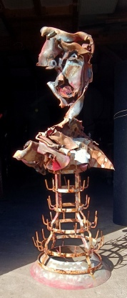 Sculpture en métal peinte à l’huile et patinée à la flamme.